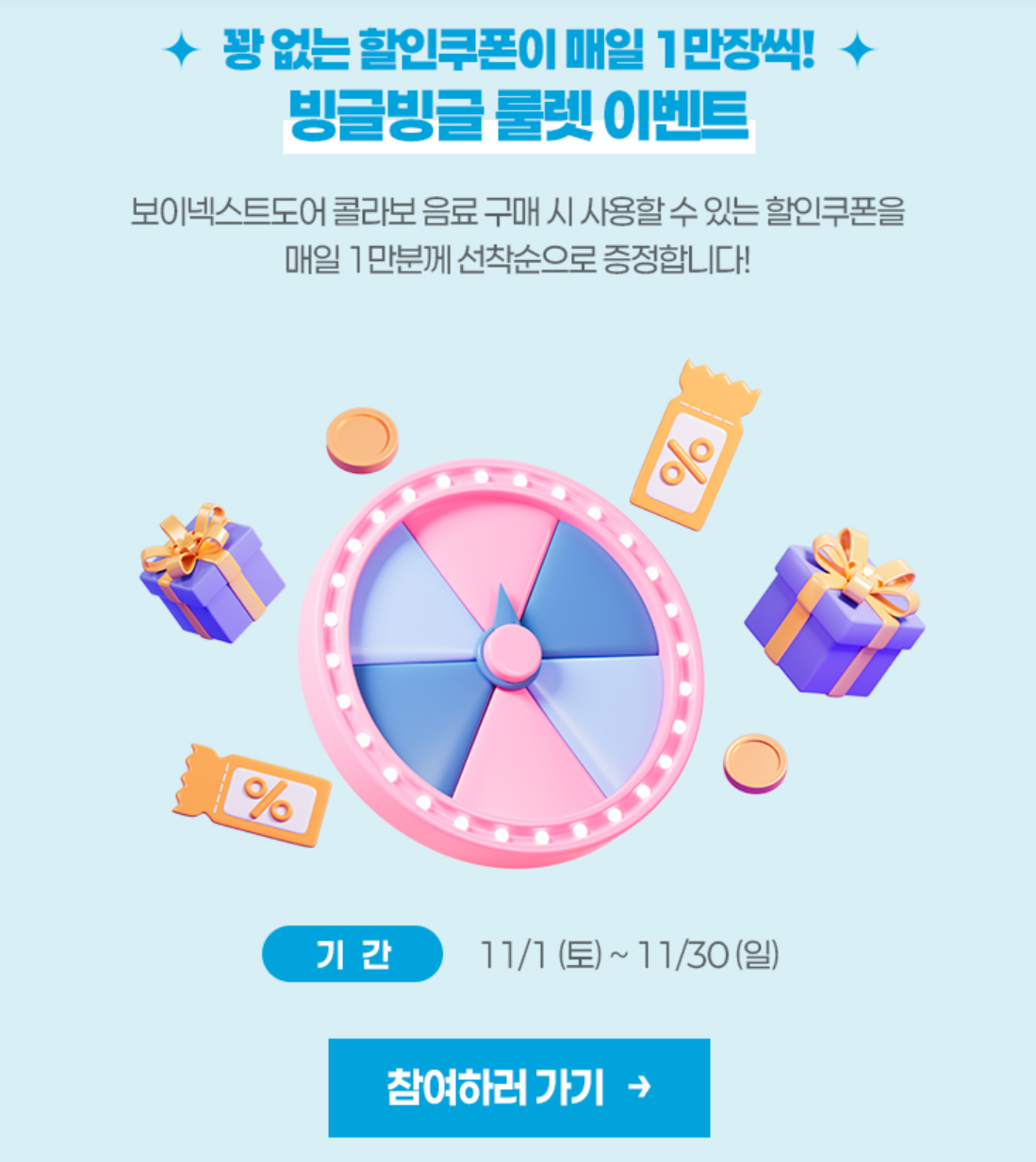 - 11/1 ~ 11/30 / 매일 1만명 선착순