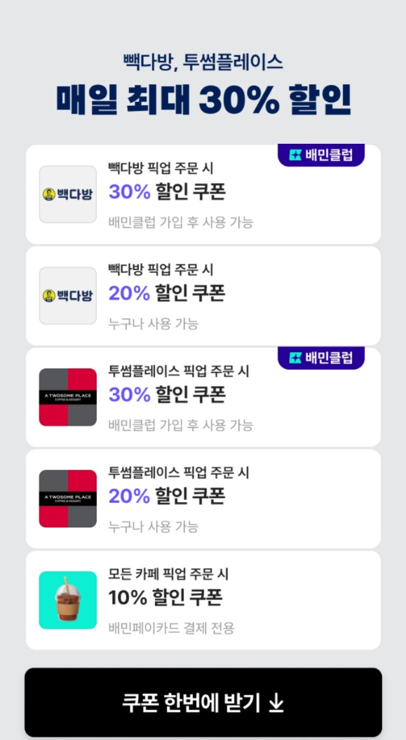 이번 행사는 배달의민족 앱에서 빽다방 픽업 주문 시 적용되는 특별 할인으로,